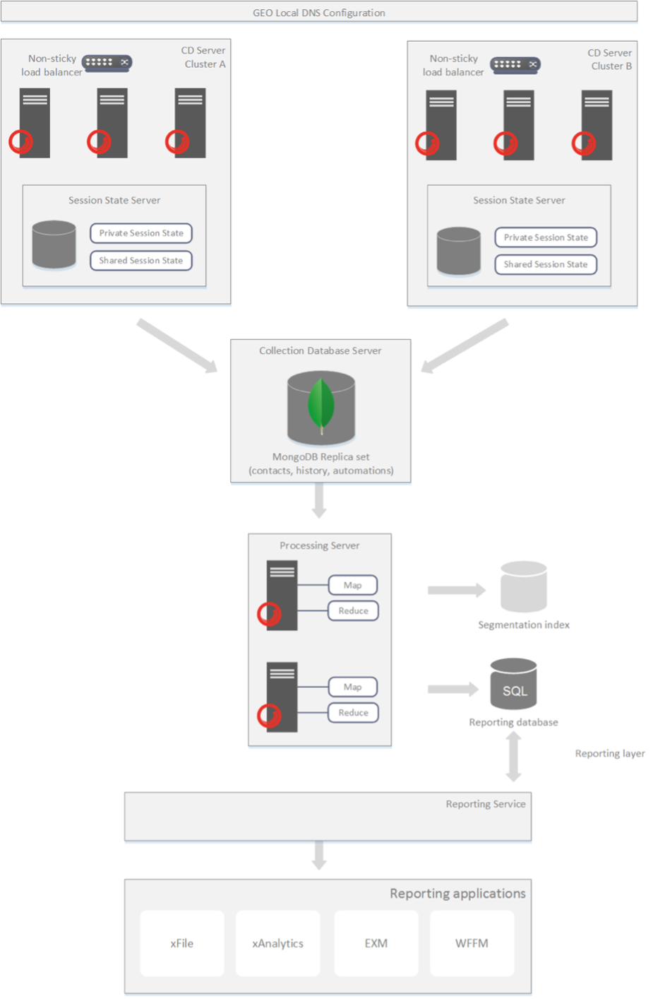 For example, as demand increases, you can deploy multiple clusters of content delivery servers to deliver web content to contacts as quickly and efficiently as possible. On multiple content delivery clusters, you can use load-balancing software to optimize performance across clusters and to maintain high availability. You could also implement multiple content delivery clusters to provide multiple geographically-distributed collection points.